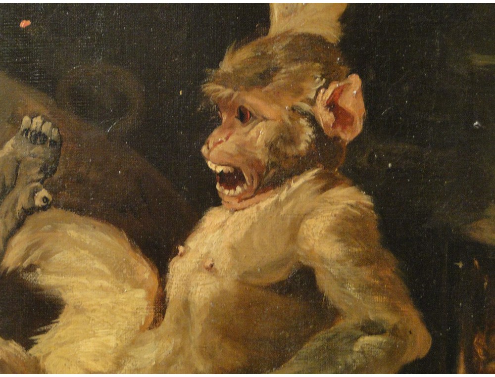 Téléchargement gratuit Hst Humoristique Singe Et Feu De Cheminee Xixe