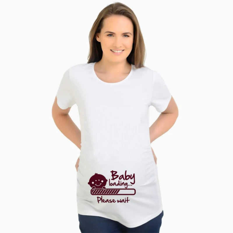 Télécharger gratuitement White Funny Maternity T Shirt Baby Loading Print Pregnancy Shirt